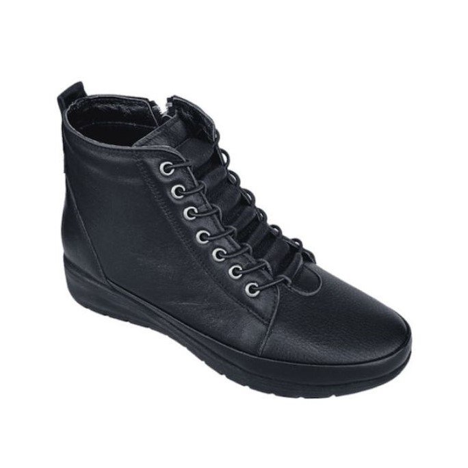 Γυναίκεια Ανατομικά Δερμάτινα Μποτάκια της Ελληνικής εταιρίας Aerostep – Κατασκευασμένα από μαλακό δέρμα άριστης ποιότητας – Διαθέτουν δερμάτινο αφρώδη ανατομικό πάτο – Ελαφριά αντιολισθητική σολά – Φερμουάρ εσωτερικά και κορδόνια λάστιχο για καλύτερη και εύκολη εφαρμογή – Ιδανικά για περπάτημα και ορθοστασία