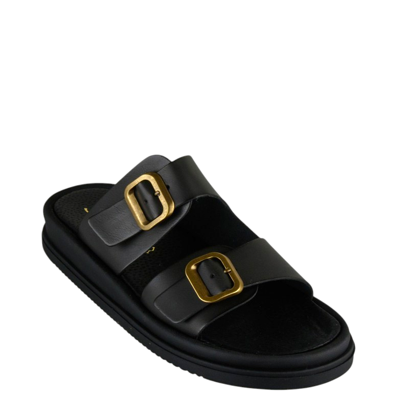 4000 Δερμάτινα Γυναικεία Flatforms Σανδάλια Μαύρο